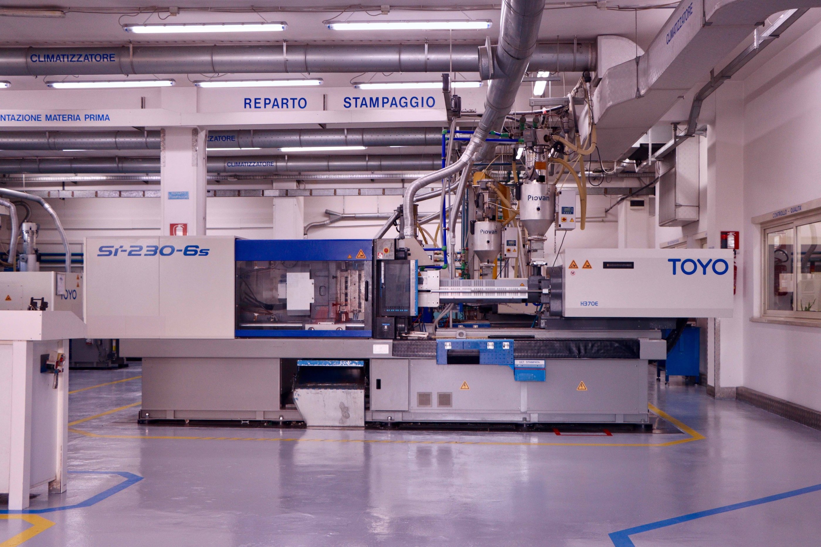 Il reparto stampaggio ad iniezione della Valid Plastic è corredato di 16 presse di ultima generazione con elevato livello di automazione e controllo, grazie anche ai sistemi informatici che permettono un controllo capillare di ogni particolare in fase di produzione.